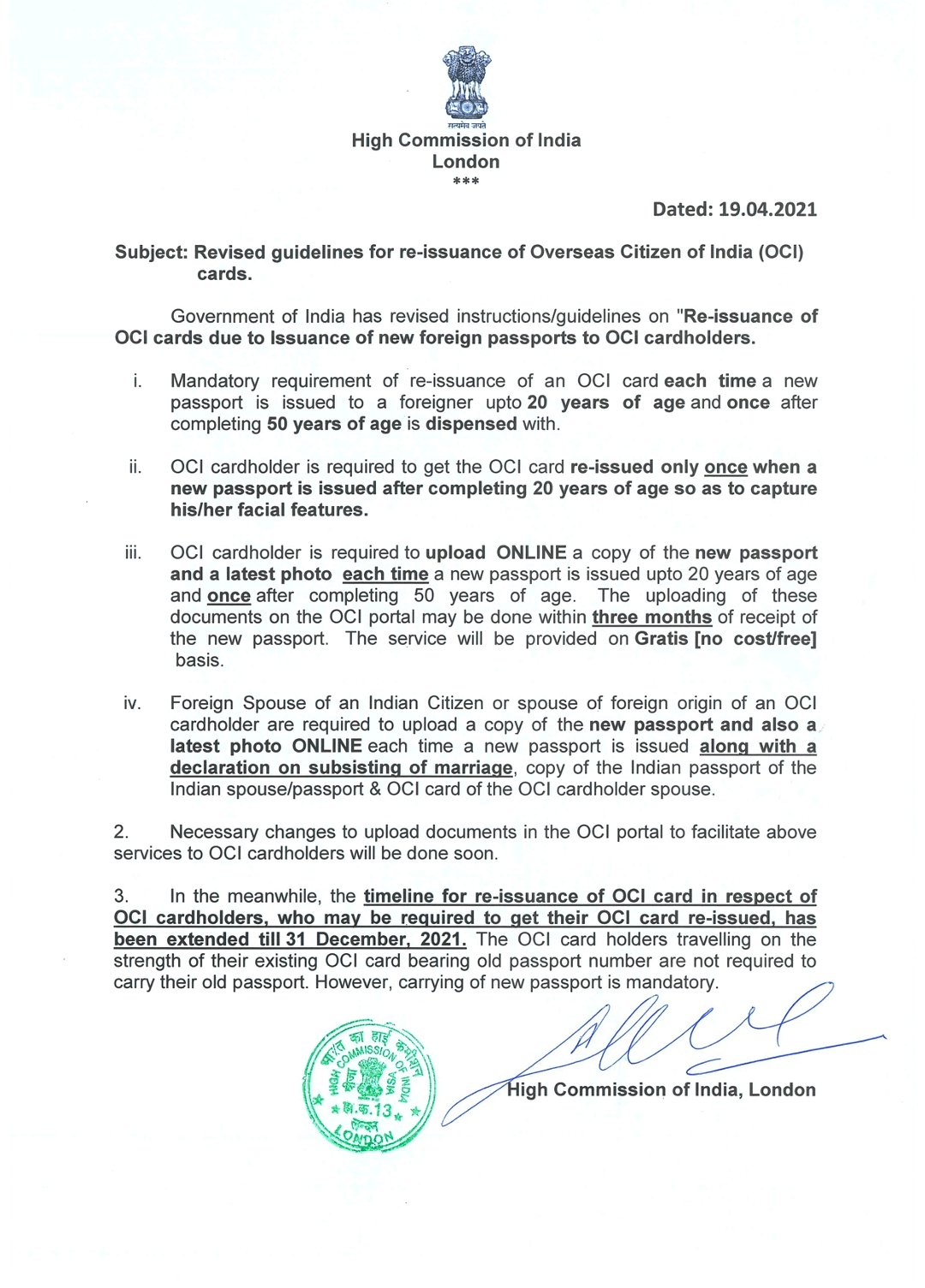 India In The Uk On Twitter Revised Guidelines For Re Issuance Of Overseas Citizens Of India Oci Card Cgi Bghm Indiainscotland Secretarycpvoia Meaindia Https T Co Ctuhwnjupz Twitter